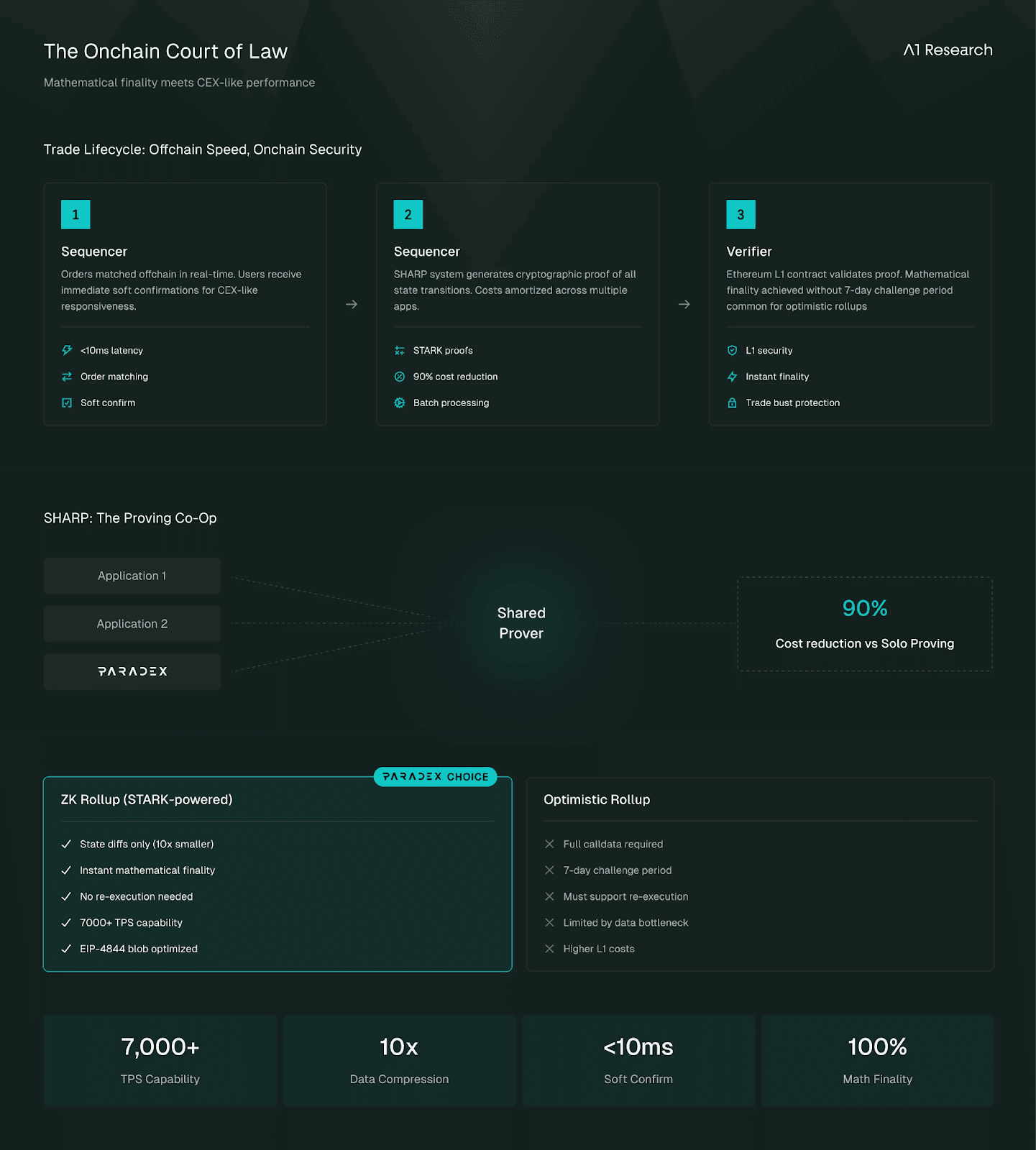 Understanding why Paradex can deliver institutional-grade privacy requires understanding how it is built. The architecture is not an accident, every design choice reflects a deliberate trade-off between performance, privacy, and trust minimization.