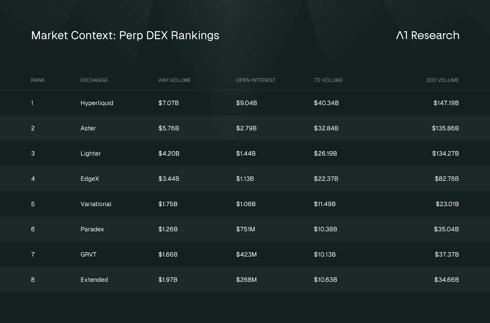 Capital Efficiency Leadership: With an OI-to-TVL ratio of 3.3x versus Hyperliquid's 2.2x, Paradex is not merely growing, it is utilizing capital more efficiently than the market leader. The 0.60x OI-to-daily-volume ratio (versus Aster's 0.48x and Extended's 0.14x) indicates traders are holding positions rather than churning for incentives.