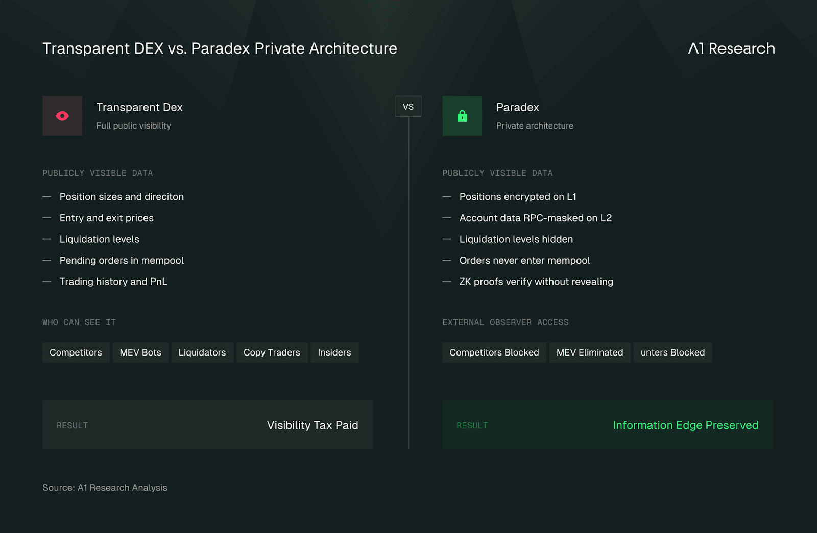 In the current decentralized trading landscape, every institutional trader pays a hidden "Visibility Tax." When position sizes, entry points, and liquidation levels are broadcast to public mempools, sophisticated players aren't just trading, they are being hunted. Paradex represents one of the most advanced attempts to mitigate the structural limitations of transparent onchain trading for large participants.